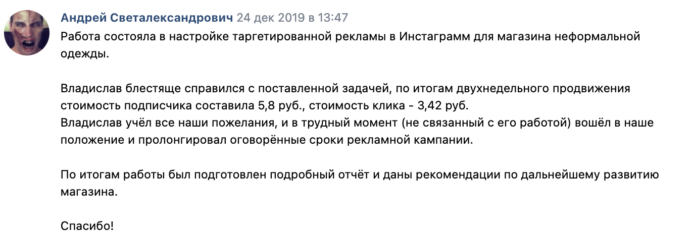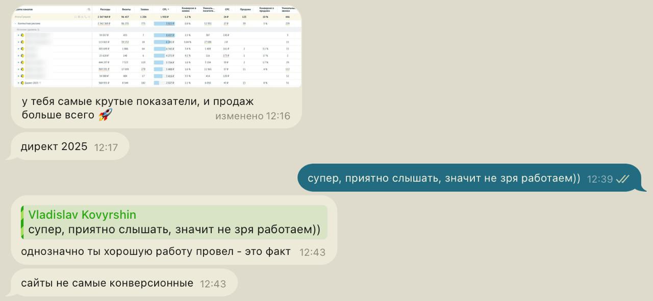 Регулярно веду проекты в товарных нишах, локальном бизнесе и B2B. Работаю от первого лица: настройка, ведение, тесты, отчётность - всё на мне. Никаких «команд», младших специалистов и передачи задачи дальше.